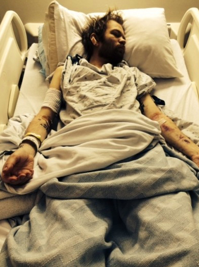 Revelando de seguida que na origem deste internamento estiveram anos de excesso, que levaram a que os seus rins e o fígado deixassem de funcionar “A razão pela qual fiquei tão doente deve-se às fortes bebedeiras que eu tenho tido ao longo dos anos. Elas finalmente apanharam-me. Eu bebia bastante todos os dias, até que numa noite eu estava sentado em casa, servi-me de outra bebida por volta da meia noite e estava prestes a assistir a um filme quando, de repente, eu não me senti bem. Aí eu caí no chão inconsciente. A minha noiva apressou-me para o hospital, onde me colocaram na unidade de terapia intensiva. Estava preso por agulhas e intravenosas por todo o lado. Eu estava completamente sedado na primeira semana. Quando finalmente acordei no dia seguinte, eu não tinha ideia de onde estava. A minha mãe e padrasto estavam de pé ao meu lado. Eu estava tão assustado. O meu fígado e rins desabaram sobre mim. Escusado será dizer que me assustei de imediato. Eu finalmente percebi que não posso beber mais. Se eu beber uma bebida o médico diz que morrerei.”