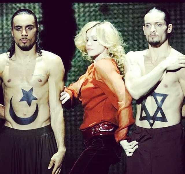 Madonna está novamente a gerar polémica com uma fotografia que publicou no Instagram. A cantora apareceu em público com dois dançarinos sem camisola que tinham pintado no seu corpo os símbolos muçulmano e judaico.